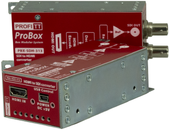PBX-SDH-313, PBX-HDS-314 are compact single-channel 3G/HD/SD-SDI to HDMI and HDMI to 3G/HD/SD-SDI converters. User-configurable audio groups (1/2 or 3/4) for transfer between SDI and HDMI. mini-USB (type B) port for configuration and power.